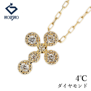 商品名 ヨンドシー ダイヤモンド ネックレス K18イエローゴールド 4℃ クロス 十字架 ミル打ち ミルグレイン