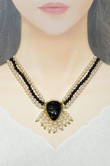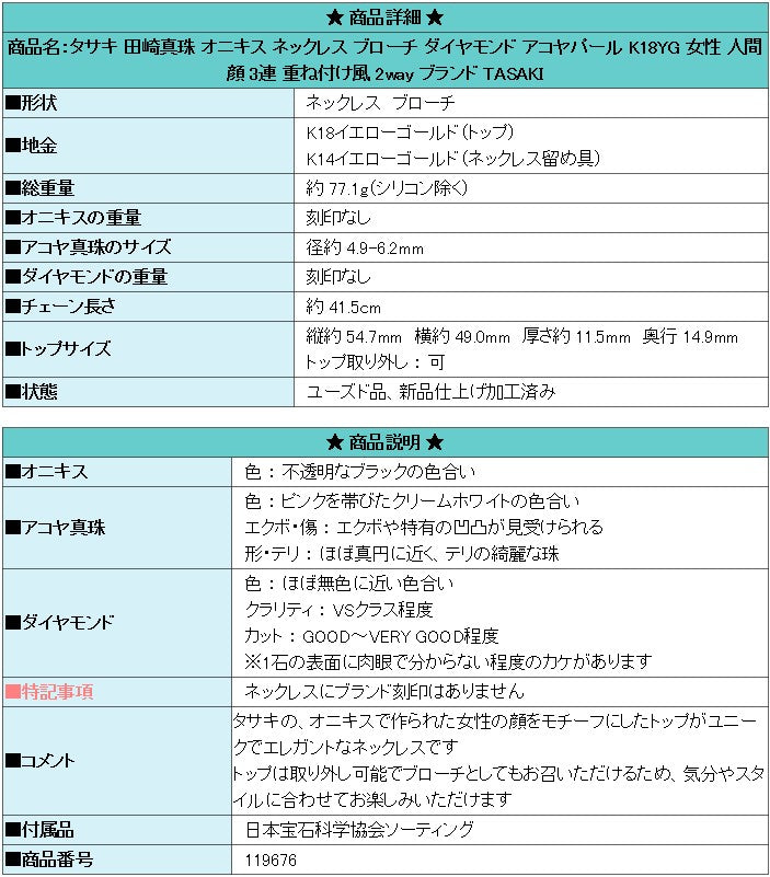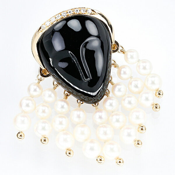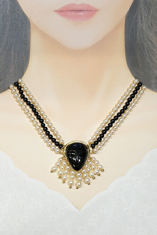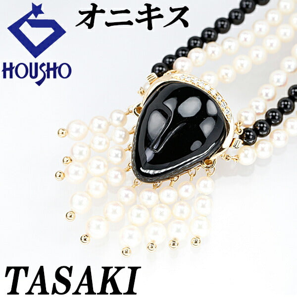 Product name: TASAKI Onyx Necklace Brooch Diamond Akoya Pearl K18YG Female Human Face 3-Row Layered Style 2-Way Brand TASAKI