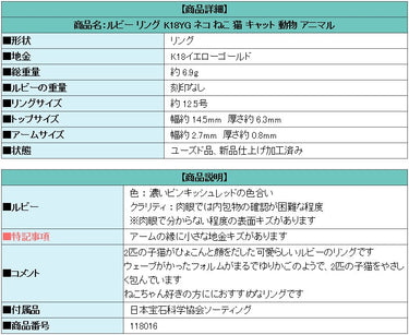 Product name: Ruby Ring K18YG Cat Cat Animal