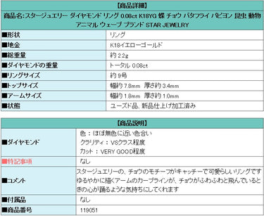 Product name: Star Jewelry Diamond Ring 0.08ct K18YG Butterfly Papillon Insect Animal Animal Wave Brand STAR JEWELRY