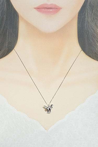 Diamond Necklace 0.02ct K18WG K18PG Cat Animal Heart | 18K Diamond Daily Use Cute Stylish [Used] [SH119331]
