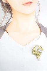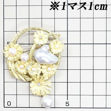 Product name: White pearl brooch, 10.3mm, Akoya pearl, diamond, K18YG, bird, animal, flower, plant, botanical, matte finish