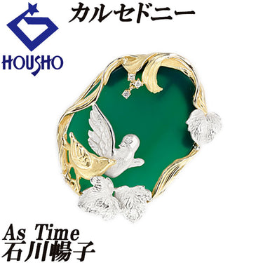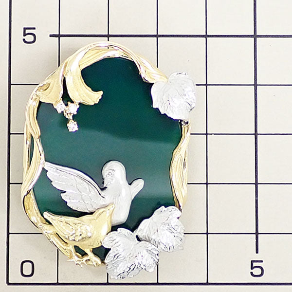 アズタイム 石川暢子 カルセドニー ブローチ ダイヤモンド K18イエローゴールド Pt900 As Time ペンダントトップ 2way 作家 デザイナー 鳥 バード 動物 アニマル 花 フラワー 植物 ボタニカル 梨地 マット ツヤ消し【中古】【903162】