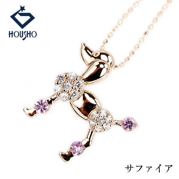 商品名 サファイア ネックレス K10ピンクゴールド 犬 プードル 動物 アニマル