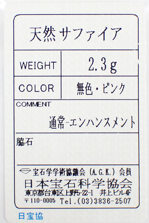 付属品 日本宝石科学協会ソーティング