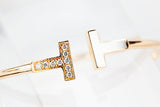 This elegant wire T bracelet is set with diamonds and shells from Tiffany's popular T collection.