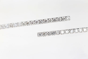 コメント 細めの2本のアームに、華やかに煌めくダイヤモンドがモードな雰囲気のバングルです。アームが留め具で開閉するため、簡単にお召いただけます。