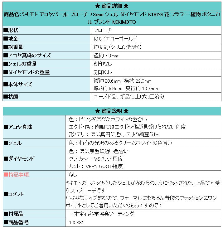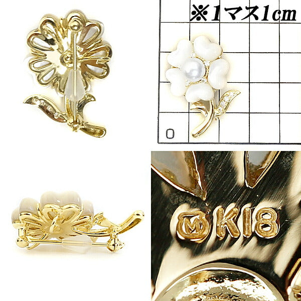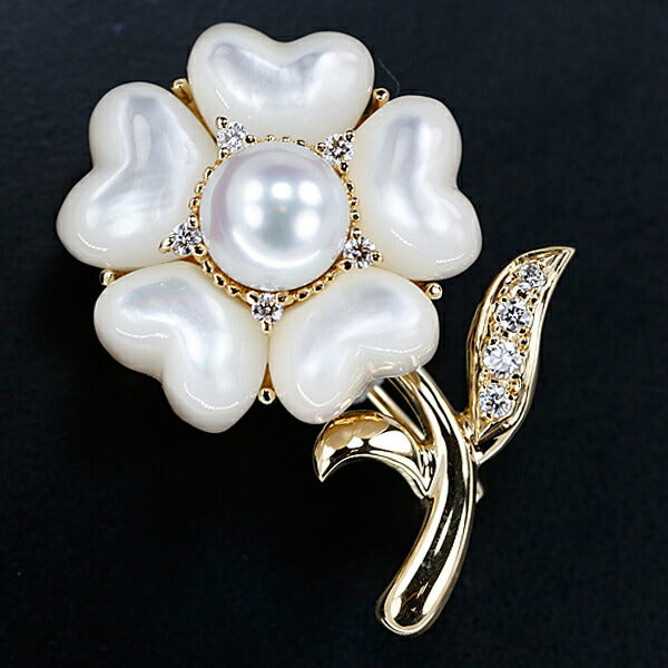 Product name: MIKIMOTO Akoya pearl brooch 7.3mm shell diamond K18YG flower plant botanical brand MIKIMOTO