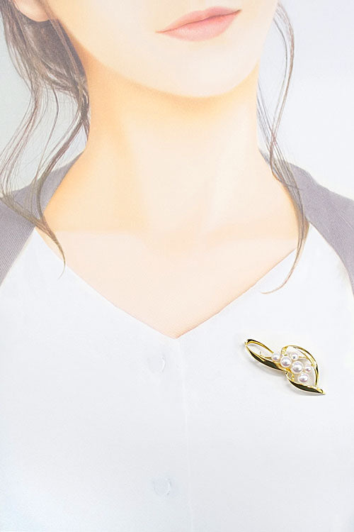 This elegant brooch features lustrous Akoya pearls from Mikimoto, which gently sparkle.