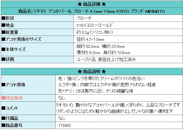 Product name: MIKIMOTO Akoya pearl brooch 4.7mm-7.0mm K18YG Brand MIKIMOTO