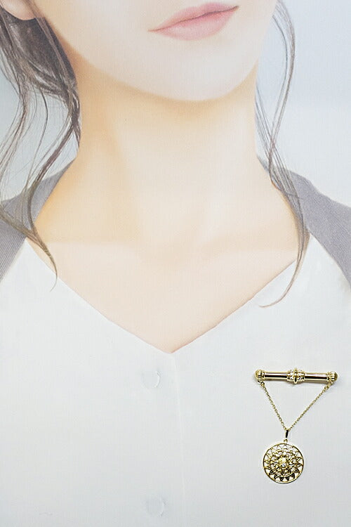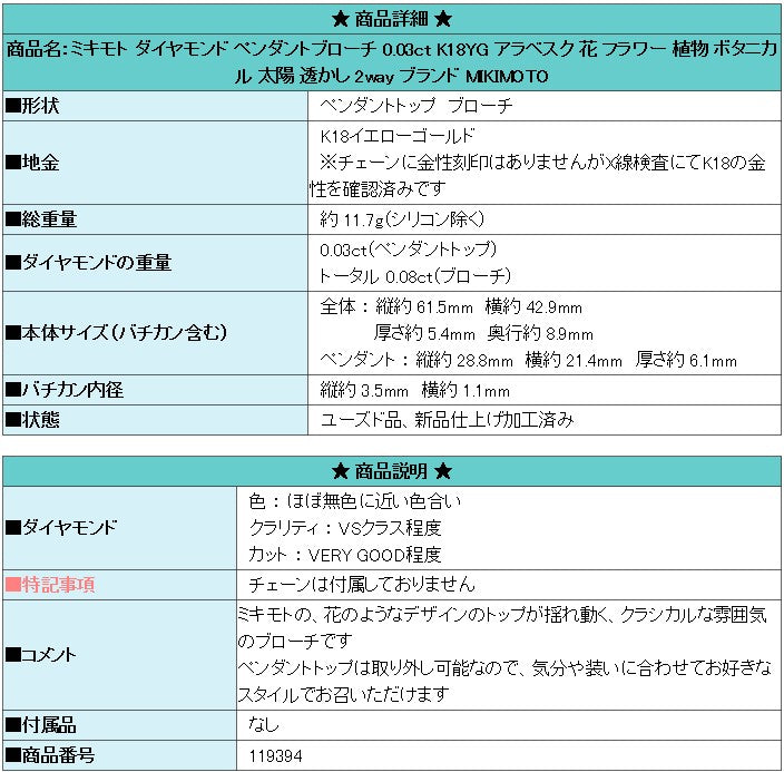 Product name: MIKIMOTO Diamond Pendant Brooch 0.03ct K18YG Arabesque Flower Plant Botanical Sun Openwork 2way Brand MIKIMOTO
