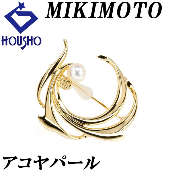 Broo Mikimoto Akoya pearl brooch K18YG flower plant botanical openwork brand MIKIMOTO | 18K Akoya pearl white pearl Japanese pearl elegant cute stylish [Used] [SH120849]
