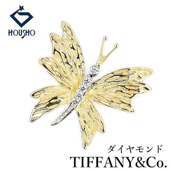 ティファニー ダイヤモンド ブローチ K18イエローゴールド K18ホワイトゴールド TIFFANY&Co. 蝶 チョウ バタフライ パピヨン 昆虫 動物 アニマル 梨地 マット ツヤ消し【中古】【904203】