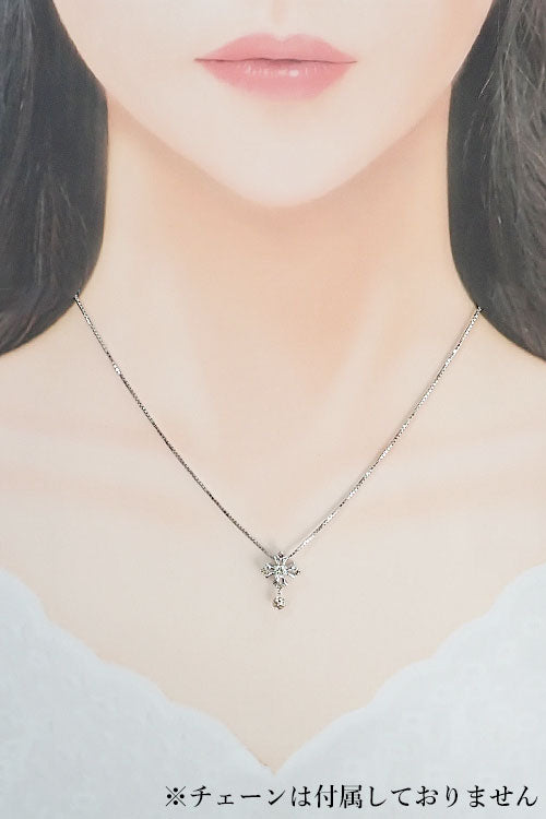 商品名 ダイヤモンド ペンダントトップ K18ホワイトゴールド クロス 十字架 揺れる 透かし