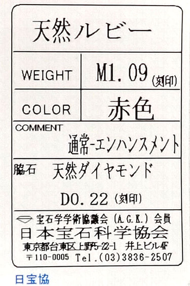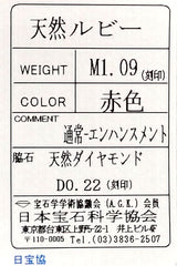 ルビー 色:濃く深いピンキッシュレッドの色合い