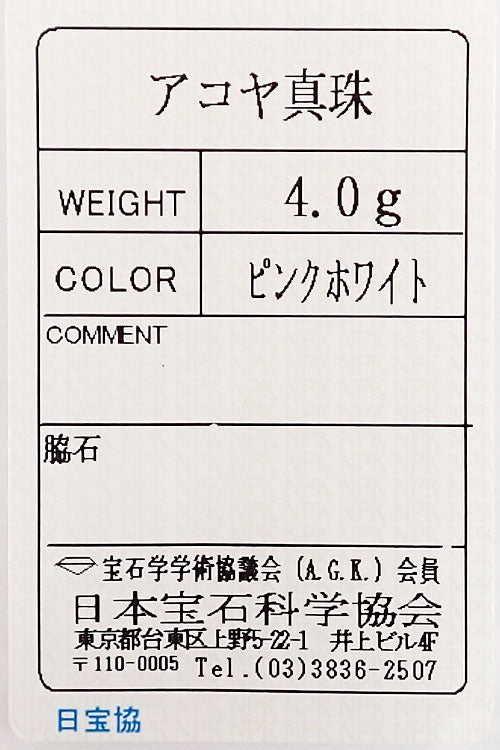 アコヤ真珠 色:ピンクを帯びたクリームホワイトの色合い