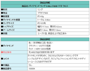 Product name: Diamond ring 0.48ct Pt900 cross