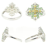 This ring features a cross motif and is made with soft yellow-hued colored stones.