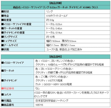 Product name: Yellow sapphire ring 0.23ct garnet diamond K18WG cross