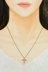 This cross motif necklace is luxuriously set with lustrous diamonds.
