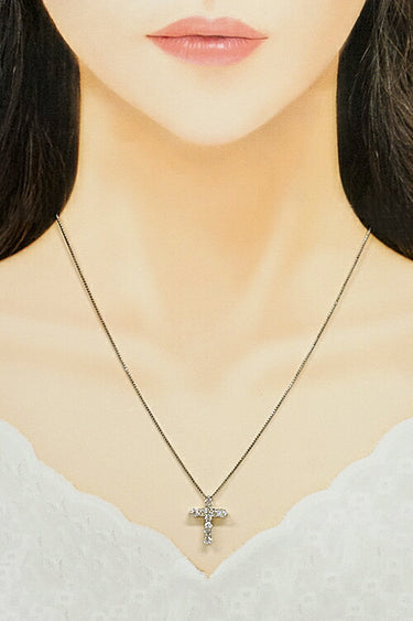 Diamond Necklace 1.00ct Pt900 Pt850 Cross Crucifix Men's Unisex | Diamond Platinum Daily Use Simple Cute Stylish Casual [Used] [SH108369]
