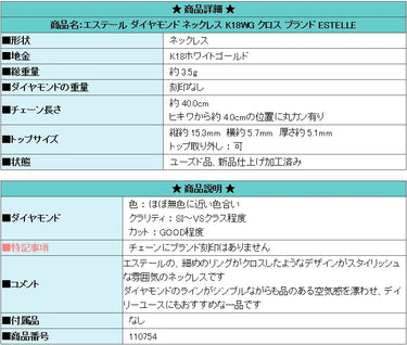 Product name: Estelle Diamond Necklace K18WG Cross Brand ESTELLE