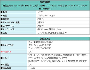 Product name: Tiffany Diamond Ring K18WG Paloma Picasso Single Stone Cross Kiss Brand TIFFANY&Co.