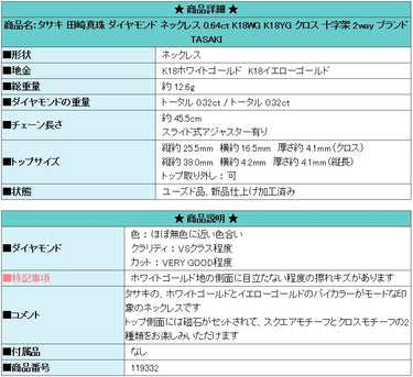 TASAKI Diamond Necklace 0.64ct K18WG YG Cross 2way Brand TASAKI | 18K Diamond Daily Use Luxurious Gorgeous Cute Stylish [Used] [SH119332]
