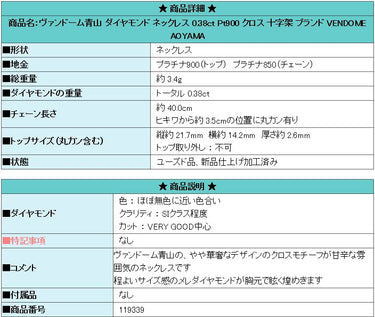 Product name: Vendome Aoyama Diamond Necklace 0.38ct Pt900 Cross Brand VENDOME AOYAMA