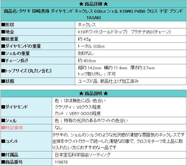 Product name: TASAKI Tasaki Pearl Diamond Necklace 0.03ct Shell K18WG Pt850 Cross Brand TASAKI