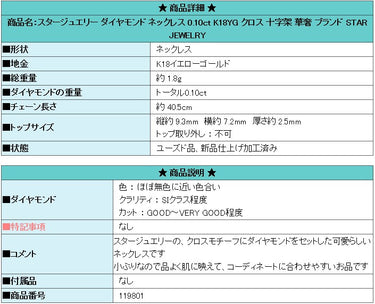 Product name: Star Jewelry Diamond Necklace 0.10ct K18YG Cross Delicate Brand STAR JEWELRY