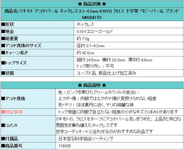 Product name: MIKIMOTO Akoya pearl necklace 3.1-4.2mm K18YG Cross Baby pearl Brand MIKIMOTO