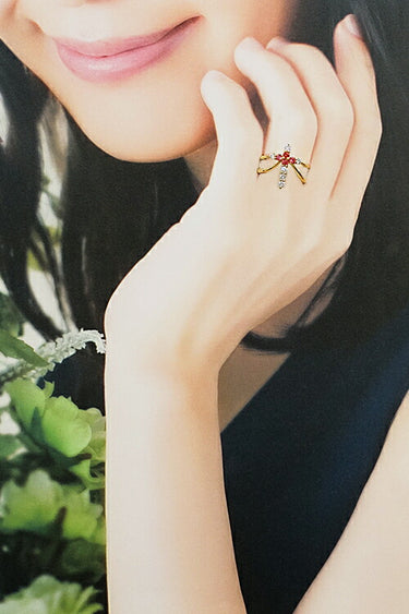 This ring features a cross motif from Cresent Vert, with a vivid vermilion-like color that will catch your eye.
