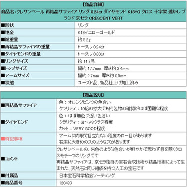気になることがあったので質問したのですが、すぐ返信があり購入前から安心感がありました。配送も早く、説明通り、鑑定書も付いていて安心しました。今後も入荷をチェックして気にいったものがあれば購入したいと思いました。