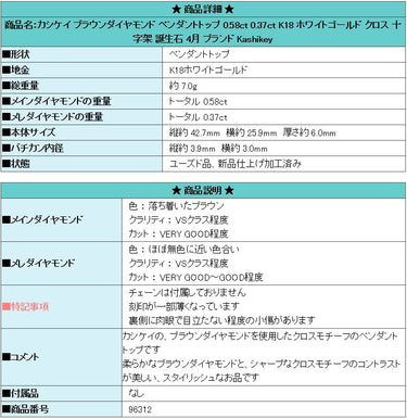 Product name: Kashikey Brown Diamond Pendant Top 0.58ct 0.37ct K18 White Gold Cross Birthstone April Brand Kashikey