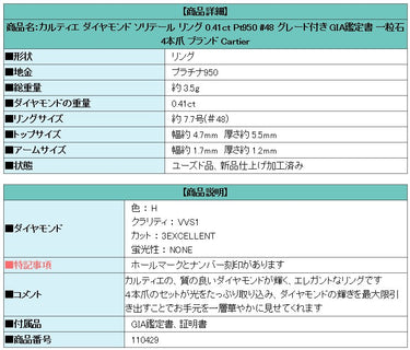 Product name: Cartier Diamond Solitaire Ring 0.41ct Pt950 #48 Graded GIA Certificate Single Stone 4 Prongs Brand Cartier