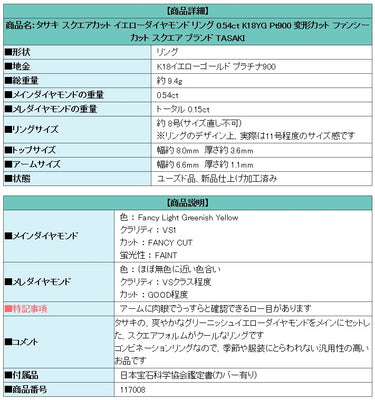 Product name: TASAKI Square Cut Yellow Diamond Ring 0.54ct K18YG Pt900 Deformed Cut Fancy Cut Square Brand TASAKI