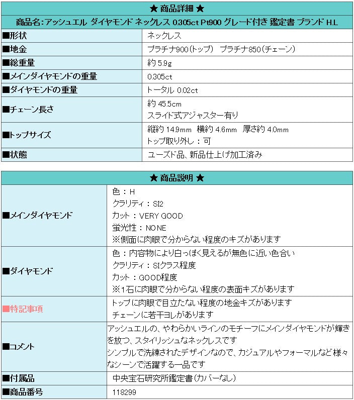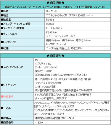 H.L Diamond Necklace 0.305ct Pt900 Graded with Certificate of Authenticity Brand HL | Diamond Platinum Daily Use Simple Cute Stylish [Used] [SH118299]
