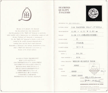 Certificate of Authenticity from the Japan Gemological Association (with cover)