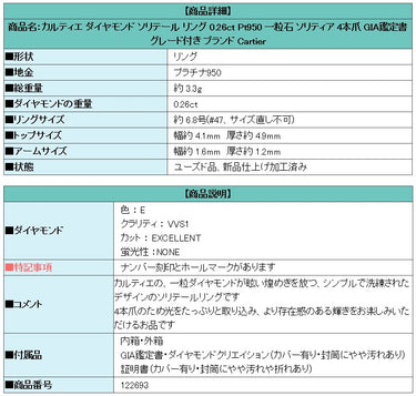 Product name: Cartier Diamond Solitaire Ring 0.26ct Pt950 Single Stone Solitaire 4-prong GIA Certified Grade Brand Cartier