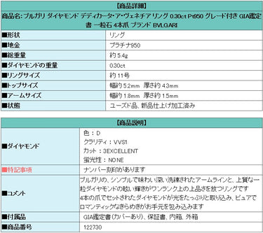 Product name: Bvlgari Diamond Dedicata a Venezia Ring 0.30ct Pt950 Graded GIA Certificate Single Stone 4 Prongs Brand BVLGARI