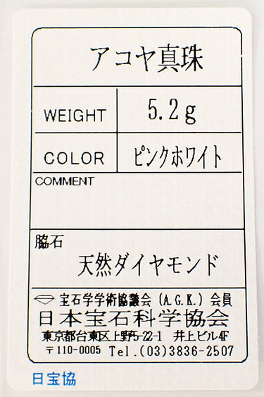 アコヤ真珠 色:ピンクを帯びたクリームホワイトの色合い