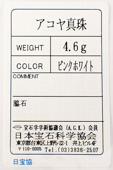 アコヤ真珠 色:ピンクを帯びたクリームホワイトの色合い
