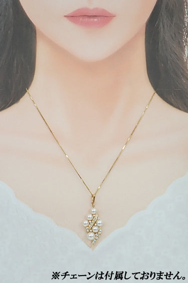 コメント ミキモトの、6粒のアコヤパールとダイヤモンドが豊かにあしらわれた、エレガントなペンダントトップです。ツイストしたようななめらか曲線が優美な印象を漂わせます。