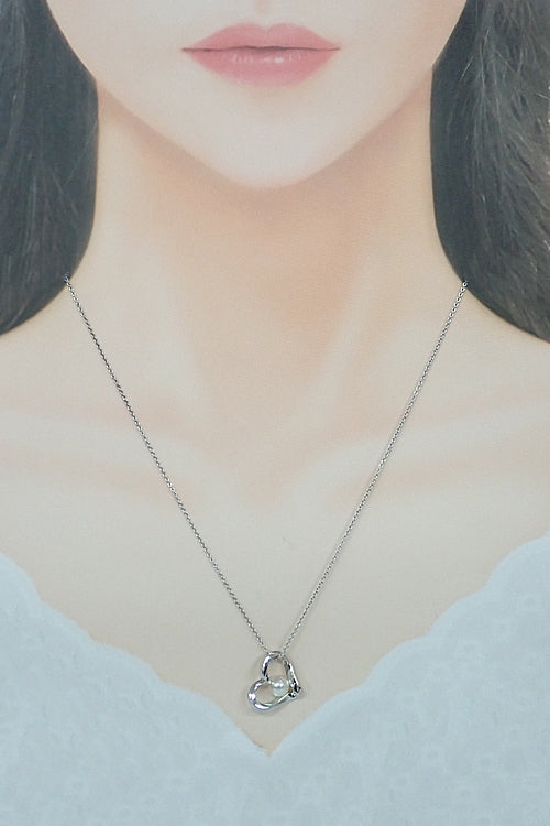 ミキモト アコヤ真珠 ネックレス K18ホワイトゴールド MIKIMOTO ハート 一粒パール【中古】【903588】