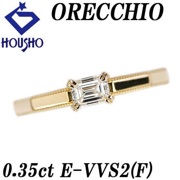 商品名 オレッキオ ORECCHIO ダイヤモンド リング K18イエローゴールド 一粒石 エメラルドカット ファンシーカット 変形カット 鑑定書 グレード付き ミル打ち ミルグレイン