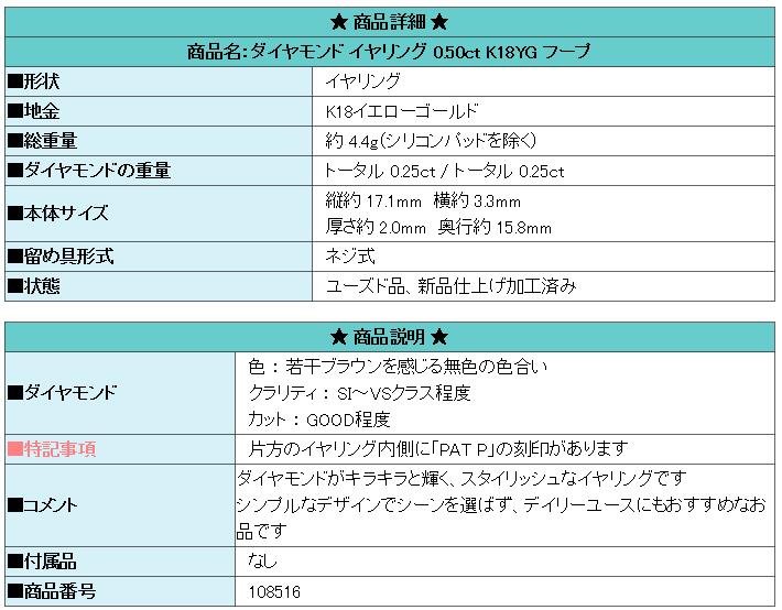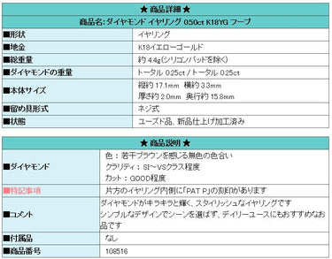Product name: Diamond earrings 0.50ct K18YG hoop