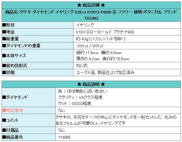 Product name: TASAKI Diamond Earrings 0.02ct K18YG Pt900 Flower Plant Botanical Brand TASAKI