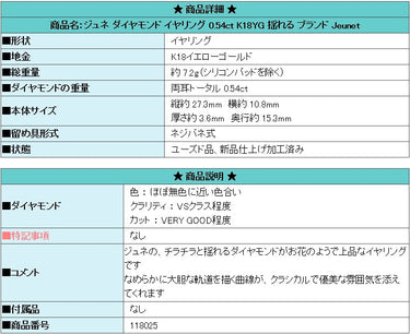 Product name: Jeunet Diamond Earrings 0.54ct K18YG Dangling Brand Jeunet