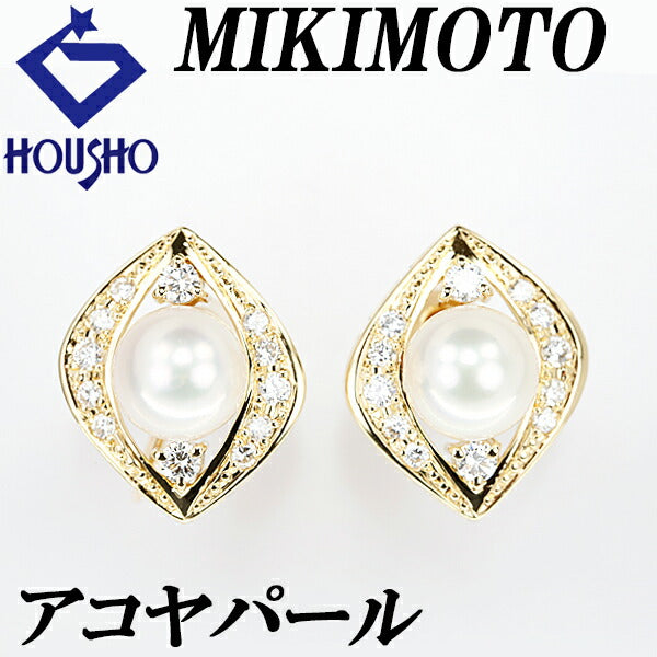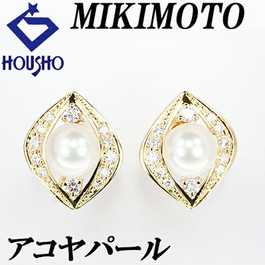 MIKIMOTO Akoya pearl earrings 7.6mm diamond K18YG openwork brand MIKIMOTO | 18K Akoya pearl white pearl Japanese pearl diamond classical cute stylish [Used] [SH119216]